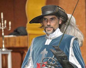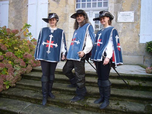 Die Memoiren des Monsieur d´Artagnan wurden noch mehrfach aufgelegt und erweckten in dem Schriftsteller Alexandre Dumas (geboren 24. Juli 1802 in Villers-Cotterêts, gestorben 5. Dezember 1870 in Puys) schließlich die Idee, daraus eine Zeitungs-Kolummne zu gestalten. Diese wurde 1843/44 in der Zeitung "Le Siècle" veröffentlicht. Der Erfolg war mächtig, "Les trois Mousquetaires" waren geboren. Dabei bleibt anzumerken, daß mit den drei Musketieren Athos, Porthos und Aramis gemeint waren. Auch diese Musketiere gab es wirklich, allerdings zu unterschiedlichen Zeiten und nicht als eingeschworene Gemeinschaft. Diese entstand im Kopf von Dumas, während er gleichzeitig zum Beispiel den seinerzeit realen Kapitän der Musketiere "Troisville" zu "Treville" mutierte. Der Erfolg der Geschichten war groß, so daß Dumas seine Musketier-Geschichten 1845 mit "Vingt ans après" (Zwanzig Jahre danach) und 1847 mit "Le Vicomte de Bragelonne ou Dix Ans Plus Tard" (Der Vicomte von Bragelonne oder Zehn Jahre später) fortsetzte. Warum Dumas seine Romane, die ansonsten dem damaligen Zeitgeschehen gut entsprechen, um zwanzig Jahre vorverlegt hat, ist nicht bekannt. Der reale d´Artagnan diente Ludwig XIV., nicht Ludwig XIII. Sein Gegenspieler war Cardinal Mazarin, nicht Richellieu. Was heute kaum bekannt ist: Dumas berühmeteste Romane (Die drei Musketiere und ihre Fortsetzungen, Der Graf von Monte Christo u.a.) entstammten zum Teil gar nicht aus seiner eigenen Feder! Denn Dumas hatte einen Co-Autor angestellt: den Schriftsteller und Prof. für Geschichte Auguste Maquet (geboren 13. September 1813 in Paris, gestorben 8. Januar 1888 in Paris). Sein Name fand allerdings keine Erwähnung, die Zusammenarbeit mit Dumas endete in den 50er Jahren des 19. Jahrhunderts. Dumas schöpfte den Ruhm alleine ab. Die BotschaftKriegerische Auseinandersetzungen stellen von jeher eine Geißel der Menschheit dar. Als militärischer Führer der Musketiere war natürlich der echte d´Artagnan auch an solchen Ereignissen maßgeblich beteiligt. Dumas große Tat aber war es, die uns einen Kapitän der Musketiere beschert hat, der großen Symbolcharakter erhalten hat: d´Artagnan ist ein Held Frankreichs und zugleich ein Vorbild für die ganze Welt. Mögen die Werte, die seinen Charakter ausmachen, nämlich Charme, Zuverlässigkeit, Mut, Kameradschaft und Treue wieder in die Herzen der männlichen Welt einkehren!Le Musée d´Artagnan, LupiacWer den Flair des heißblütigen Gascogners nachempfinden möchte, der sollte seiner Heimat einen Besuch abstatten. Reizvolle Landschaft, Sonnenblumenfelder soweit das Auge reicht. Mittendrin das Städtchen Lupiac, im heutigen Gers gelegen. Es befindet sich noch heute nahezu unverändert im Stil des 17. Jahrhunderts. Sandiger Marktplatz mit Brunnen, umgeben von flachen Häusern aus der Zeit d´Artagnans, Rathaus, Kirche, ein Krämer. Rund vier Kilometer entfernt befindet sich das Schloß Castelmore, heute leider nicht öffentlich, sondern im Privatbesitz des Bürgermeisters. Hier soll d´Artagnan das Licht der Welt erblickt haben. Zu seiner Erinnerung gibt es in Lupiac in der Chapelle Notre Dame ein kleines, aber reizendes Museum. Hier wird die Geschichte d´Artagnans und der Musketiere wieder lebendig. Bücher, Dokumente, Muskete und Musketenkugeln, Degen, Bronzefiguren, Filmplakate. Dazu eine wunderbare Filmdokumentation in einem kleinen Kinoraum.Das FestivalEs war in den frühen Morgenstunden des Ostersamstag, den 23. April 2011, als ich mit meinen Musketieren die Karosse verließ und erstmalig den sandigen Boden des Hauptplatzes von Lupiac betrat. Ein Gefühl von "Heimat" umschlich mich und mein erster Gedanke war: das wäre die richtige Kulisse für ein historisches d´Artagnan-Fest.Mit Leinenhemd und Stiefeln machte ich mich auf die Suche nach Frühstück. Als mir eine Lupiacerin entgegen kam, waren ihre erstaunten Worte: "d´Artagnan?!". Nun fühlte ich mich endgültig zuhause. Meine Idee von einem d´Artagnan-Fest stieß im Museum auf Begeisterung, zumal die Zeit des 400. Geburtstages anstand. Jedoch machte man mir wenig Hoffnung, da der Bürgermeister so etwas stets ablehne. Dieser wohne im Schloß Castelmore, antworte nicht auf Anfragen und ließ auch niemanden in das Schloß. Nun wären wir keine Musketiere, wenn wir hier kapituliert hätten. Auf nach Castelmore! Bei der Schloßbestürmung trafen wir auf einen mehr als erstaunten Bürgermeister. Fassungslos blickte er auf die Musketiere, die sein Schloß unerlaubt betraten. D´Artagnan war zurück. Einer Schloßbesichtigung stand plötzlich nichts mehr im Wege. Besonders begeisterte uns die sehr original erhaltene Schloßküche mit dem großen Kamin. Auf einer langen Rittertafel lagen zwei gekreuzte Degen. Ich zog meinen Degen und legte ihn dazu, mit den Worten: "Les trois Mousquetaires!" Der Bürgermeister war gerührt und bedankte sich mit einer Flasche Armagnac und einem "Eine Million"- Reichsmark Inflationsgeldschein. Als wir wieder in Hamburg eintrafen, fand sich eine freudige Botschaft im Postfach: das "Musée d´Artagnan", selbst überrascht, teilte mir mit, daß der 400. Geburtstag d´Artagnans gefeiert werden soll und man bitte mich als d´Artagnan mit meinen Musketieren und Pferden das Fest mitzugestalten. Was nun geschah, ist unvorstellbar. Ein mehr als vierzigköpfiges Kommitée trat unter der Leitung der zweiten Bürgermeisterin Véronique Thieux-Louit und dem größten d´Artagnan-Experten Régis Meyer zusammen, um die Vorbereitungen zu treffen. In Lupiac wurde gemalt, Fassaden restauriert, Stände gezimmert. Eine Schneiderei wurde eingerichtet, für alle 312 Einwohner wurden historisch authentische Kostüme genäht. Wimpel, Fahnen, Wappenschilder entstanden. Lupiac war aus dem Schlaf erwacht und wurde kompromisslos ins 17. Jahrhundert zurückversetzt. Und es sollte sich lohnen. Am 12. August 2012 zog es mehrere tausend Besucher nach Lupiac, sie sollten eine sensationelle Zeitreise erleben. Zur Eröffnung eskortierten 